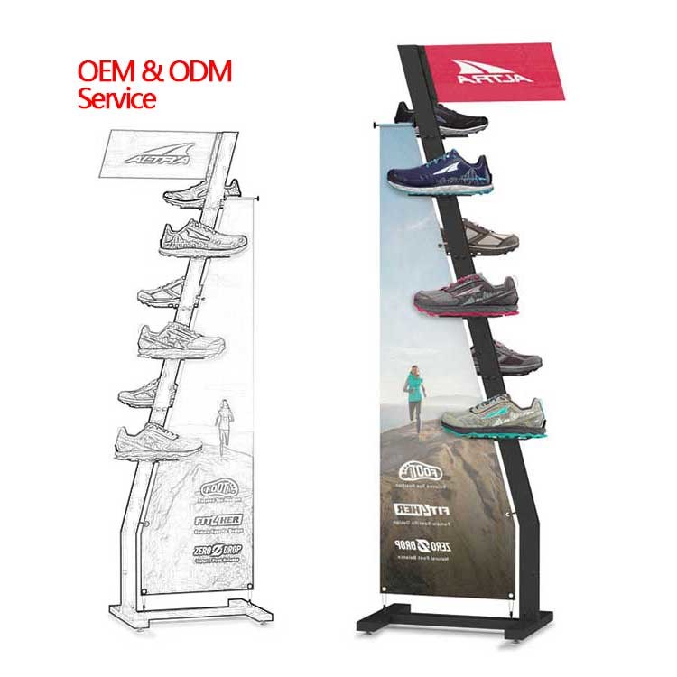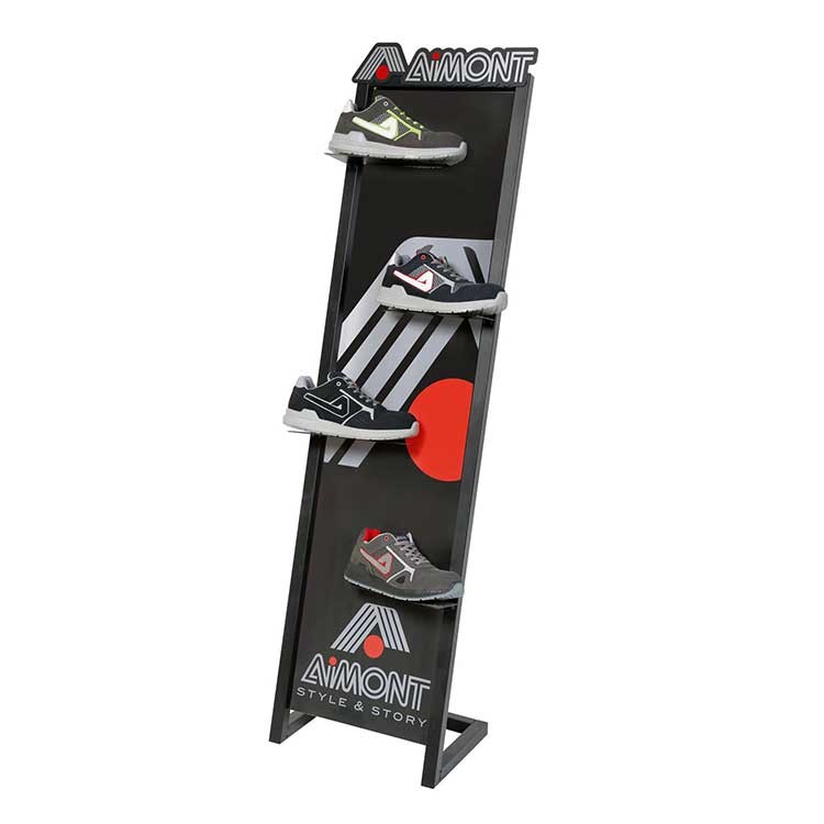 | Название продукта: | Изготовленная на заказ штейновая черная выставочная витрина ботинка пола металла для розничного мага | Материал: | Металл |
