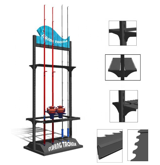 | Название продукта: | Двойник OEM изготовленный на заказ встал на сторону регулируемый стеллаж для выставки товаров рыболо | Материал: | Металл |