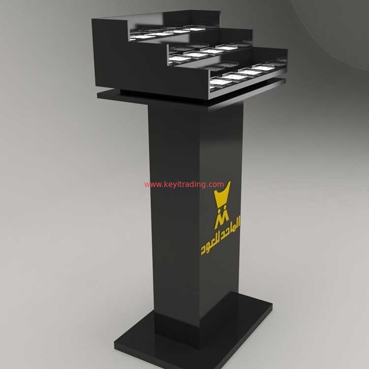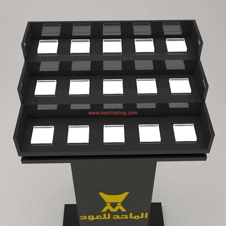 | Название продукта: | Freestanding роскошный деревянный стеллаж для выставки товаров духов 3 шагов со светом приведенным | Материал: | Древесина |