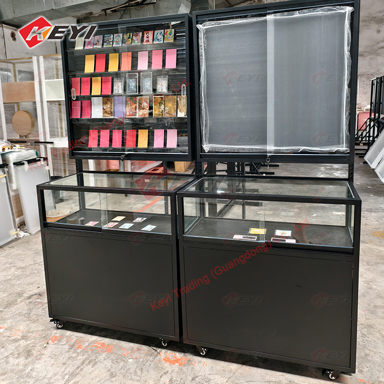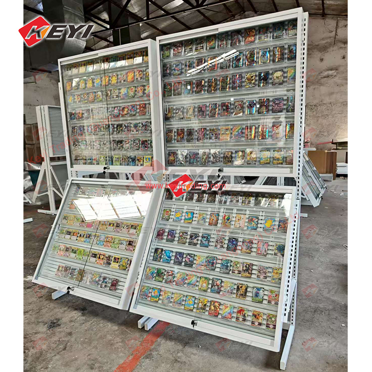 Эта витрина разработана для демонстрации градуированных торговых и спортивных карт, имеет регулируемые по высоте полки и запирающиеся двери. Она изготовлена из металла, акрила и настраиваемых материалов, подходит для розничных магазинов, супермаркетов, торговых центров и выставок, торговых шоу и т. д. Подходит для большинства стилей карт, таких как карты PSA, карты TCG, градуированные карты со слэбом, стандартные карты Pokemon и так далее. Разборная конструкция экономит транспортные расходы и обеспечивает легкую сборку с помощью инструкции. Доступны индивидуальные размеры и цвета, что делает ее универсальной для различных применений внутри помещений.